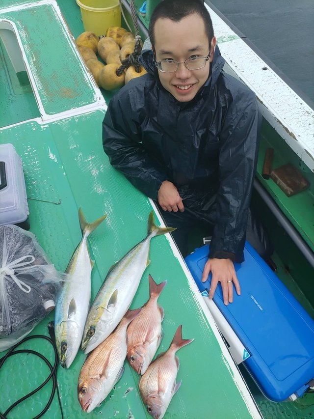 0.40~1.20kg 4~8匹 イナダ 凪よく朝から好スタート。マダイかイナダが当たり続きました!トップ2名様、1人は胴の間でゲットです。6名様の出船で皆さん複数釣れました。