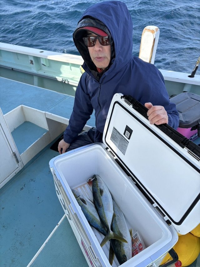 0.80~4.00kg 0~2匹 イナダ 1.00~2.00kg 0~8匹 クロダイ 1.50~2.00kg 0~1匹 大型3号で出船しました。ポイントを転々と移動し拾い釣りでした。型が良く最大4㎏!他3㎏、2㎏と良型マダイが揚り、トップは2枚でした!イナダもアタリ良く皆様お土産になりました!シケ明けに期待! 平日、週末空き多数です。御予約お待ちしてます。 オモリは80号 マダイ用ハリス 4~5号8m~10m 幅広いハリスをご用意しておいてください。 ※コマセは船の中で割らないようお願いします。(岸壁で割るようお願いします。) ※出船時間の15分前に船を離しますので早めに乗船して下さい。
