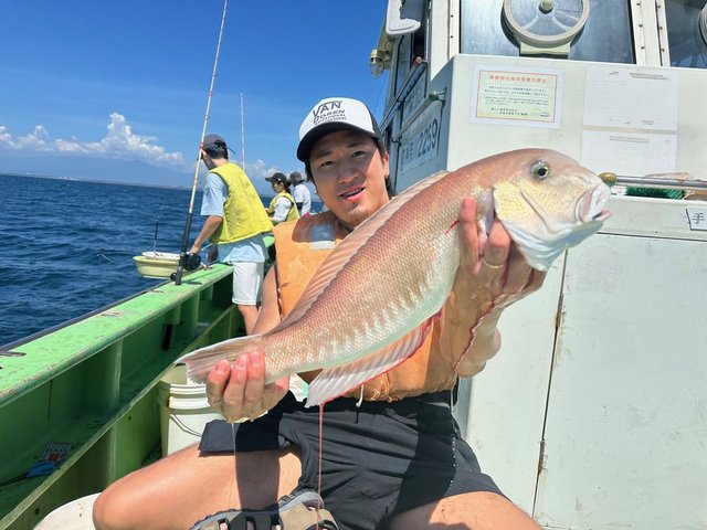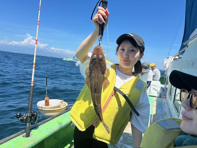 (マサバ)アマダイ 35~41cm 1~3匹 オニカサゴ カワハギ アンコウ ホウボウ カイワリ タコ ユメカサゴ 今日は日差しは強かったのですが 風がそよそよあって気持ちのいい釣行でした。 朝イチ、ポイントについて 一投目からビックヒット! 2名のお客様がほぼ同時に巻き始めて 上がってきたのはビッグオニカサゴとアマダイ! アマダイも良型で35cm程あったと思います。そのすぐ後もビッグオニカサゴをゲット! 基本はオキアミを使うのですが 特餌にホタルイカが結構良い感じです。 これは大漁早上がりもあるか!?!?!? なんて思いましたが そんな思い通りにいくはずもなく その後は全くと言っていいほど 生体反応がなく苦戦。 前日に大漁だったレンコダイも少なめ。 潮の流れもほぼなく 次々とポイントを移動して 生体反応を探しました。 最近はあまり探っていなかった 結構な深場のポイントも探りに行き ココはオニカサゴもデカアマダイも潜んでるんだよ! と、話をしていると そうそうにヒット! 深場&手巻きリールということもあり ヒーヒー言いながらも巻き上げてくると 38cmの良型アマダイをゲット。 お昼頃まで深場中心に探りを入れていると アタリは少なめですが ヒットするといいサイズで 本日最大魚の41cmもゲットしました。 後半戦は少し浅めのポイントを探り 13時30分に全員安打を果たしました。 特にビックリしたのは カワハギとアンコウ! まだまだ夏の海ですがカワハギは太っていました。 アンコウは少し小さめだったので 研究所に寄付させて頂きました。 難しい状況でしたが 頑張っていただきありがとうございました。 明日も頑張ります。水色やや澄。