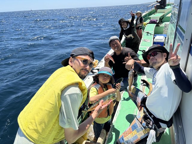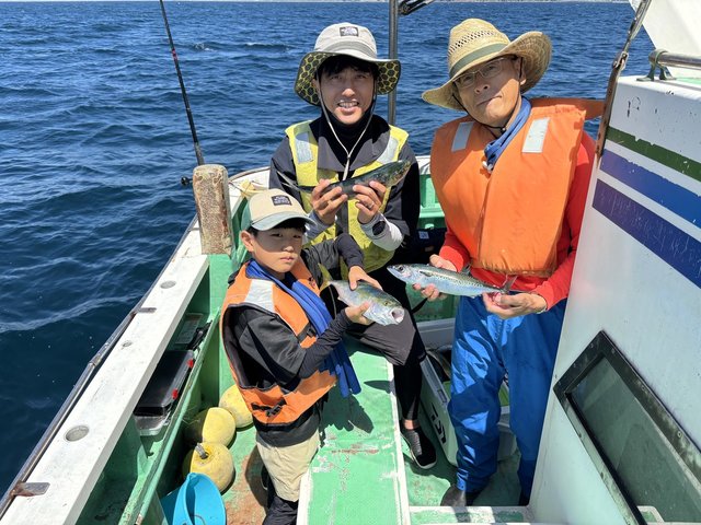 去年も遊びに来てくれた年長さんのお友達とご両親。アジ釣りに出かけてきました^_^ 最初のポイントでは型が良かったりサバがヒットしたりと魚の引きが強くてなかなかリールを巻けませんでしたね^_^ そのうちカタクチイワシが鈴なりに釣れるようになりアジが少なく‥場所移動。 移動先ではやや小ぶりが多かったもののトリプルヒットなど釣れ続きました! 最大23cmくらい、体高のある食べ頃の金アジは本当に美味しそうです!! もうたくさん、とのことでラストはタコを少しやってみたのですがこちらはノーヒット。 風が強くなる予報でしたので粘らず帰港しました。 最後まで元気いっぱい沢山ってくれてありがとうございました!