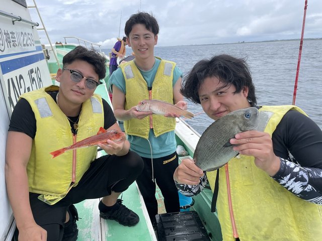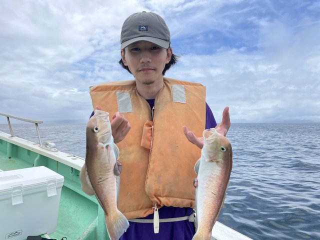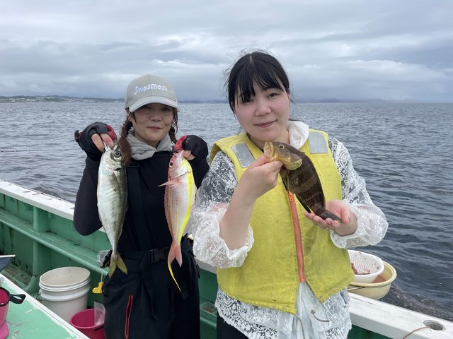(マサバ)マアジ 28~38cm 20~54匹 クロムツ 23~28cm 1~5匹 シロアマダイ イトヨリ 今日は青物五目乗合で出船しました。 朝からマアジ入れ食い!! 潮速く難しい中皆様タナ取りバッチリで ダブル、トリプルで釣れたりもしました。 他にはクロムツ、サバなども全員釣れて ラストはアマダイ狙いに行き シロアマダイとイトヨリ釣れました! 本日ご乗船の皆様、ありがとうございました! またのご乗船をお待ちしております。 明日6/27(金)も青物五目乗合船で出船確定! 6/28(土)はショート青物五目乗合船で出船確定! 皆様からのご予約をお待ちしております。 今週末も皆様からのご予約をお待ちしております! 朝の涼しいうちに釣りをして暑くなる前に戻り 朝は釣り、午後はゆっくりお過ごし出来ます。 また、お子さんが長時間釣りが出来るか心配な方もお試しには丁度良いかと! 1日船とショート船ご予約の際にお申し付けください。 6月も平日、土日共に空席多数! 皆様からのご予約をお待ちしております。 来週以降も空き多数ですので 皆様からのご予約をお待ちしております。