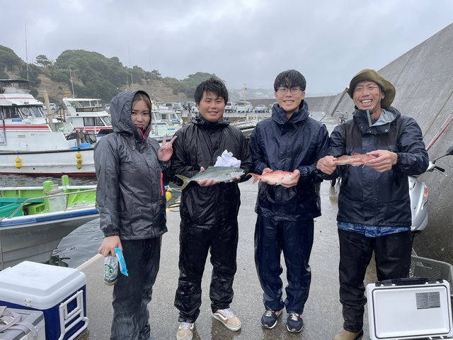 (マサバ)アマダイ イトヨリ レンコダイ トンビギス アオハタ ホウボウ カイワリ カサゴ ガンゾウヒラメ オジサン 今日は北風の雨陽気で 凍える釣行でした。 私はアマダイ船を担当させて頂きました! ほぼフルレンタルチームということで 朝からレクチャーをさせて頂きました。 潮は時々二枚潮になりましたが 1日しっかり動いて 生体反応も多めでした。 特に目立ったのはイトヨリ! 最近は嫌という程レンコダイ、トンビギスだらけだったのですが 逆にその2種は少なめでした! 後半戦はレンコダイは顔を出すようになりましたが トンビギスは船中顔を見なかったのでは? という感じ……。 皆さんとても丁寧に少し細めのゲストも しっかり血抜きしていて 食卓が賑わうのが目に浮かびます。 大本命アマダイはご機嫌ななめの様でしたが 9時30分頃にパタパタっと35cmほどの 良型が顔を出してくれました。 その後私の船では良いポイントに当てれず 次に顔を出したのは14時15分。 実は雨も強くなり早上がりの提案も出たのですが 皆さんすごくやる気満々で ラストまで頑張りたいとのことで しっかりみっちりやらせていただきました! ラストひと流しの時も女性のお客様が 「これが最後かな?絶対アマダイ釣る!!!!!!」 と、仰っていて有言実行!!!!!! 見事に14時25分に念願のアマダイをゲット! 釣りはメンタルですね😏✨ 本当によく頑張ってくれました!