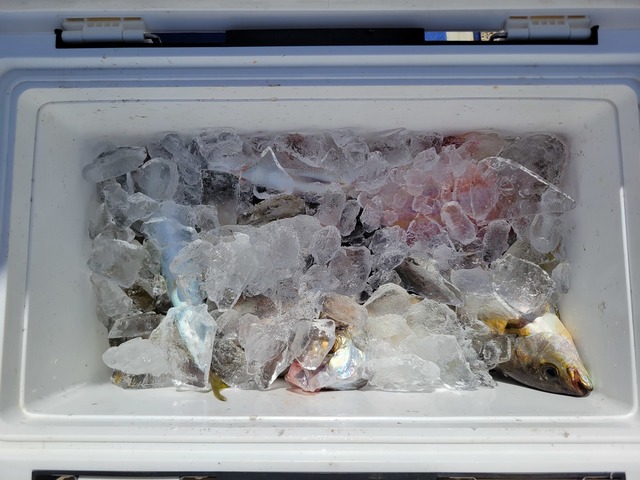 (マサバ)アマダイ 20~40cm 0~2匹 カイワリ イトヨリ オニカサゴ カナガシラ 今日は曇り予報がハズレ サンサン太陽で暑い釣行でした。 私はフルレンタルチームを 担当させて頂き 朝から入念なレクチャー。 私事ですが今日誕生日だったので 皆様の釣果で祝福してください! なんて朝から熱血全開。 潮は1日流れていましたが 良かったのは朝の少しだけ……。 後は二枚潮になりサバもよく釣れ トラブルも多く大苦戦。 出船してから3時間ほどは 戦場のような状況……。 そんな状況でも 本当に皆さん頑張ってくれて 数はあまり多く出ませんでしたが ポニョなしで大物賞は40cmアップ。 午前中より 午後の方が生体反応増えました。 ただ沖から大きなうねりが入ってきていて しっかりタナを取っているのに うねりで高めの位置になってしまい レンコダイマスターに徹してしまうお客様も。 もう1隻の方は数は多くでましたが 極小記録更新か!?!?!? というポニョも混じったそうです。 ポニョが出るということは 新しい命が生まれているということですね。 少し簡単になってしまいますが 今日も頑張って頂きありがとうございました。水色澄み。