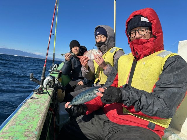 (マサバ)マダイ 0.80~2.00kg 0~4匹 カワハギ 16~25cm 0~9匹 クロダイ カンパチ アジ イナダ キタマクラ マダイ船。 潮色と流れ:澄みゆるい。 風向きと強さ:北東ほどほど。 波高:0.5-1.0M。 別船カワハギ竿頭:佐藤さん。 あけましておめでとうございます! 今年もどうぞよろしくお願いいたしますm(__)m! 真鯛はトップ4枚、最大2kg! 真鯛釣り、深場で狙うと30cm超えの大型アジも釣れています。 水深40-50mでは真鯛だけでなく、カンパチや黒鯛、イナダなども食いついていて、後半の潮になるとサバの魚群も入り、サバも釣れています。 カワハギ釣り、トップ9枚! 早朝の剣崎沖は北風が強めでやや波あり。 城ヶ島沖の水深30-40mを中心に狙い、1流しに1-3枚ほどのカワハギが釣れて、一荷釣りのも数回あり。 12時が近づくとカワハギの活性は渋くなり、キタマクラが目立つような展開へ。後半は釣り場を転々としてカワハギをゲット。 リクエスト乗合の日程。 ・1月5日カワハギ乗合。 ・1月6日真鯛乗合。 ・1月7日アジの泳がせ。 ・1月11日真鯛乗合。 ・1月12日真鯛乗合。 ・1月13日真鯛乗合。 ・1月18日真鯛乗合。 ・1月19日真鯛乗合。