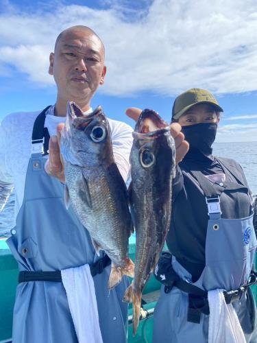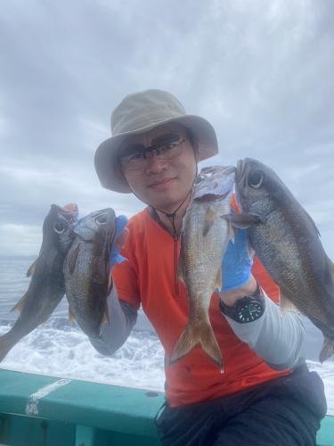 クロムツ 竿頭7匹 ハチビキ アジ サバ ヒラメ 竿頭3匹 アカハタ マハタ シマアジ カサゴ 今日も朝一はフラッシャーサビキ黒むつ五目へ。朝から潮の流れ良く反応も多く、モグモグしました! 黒むつは良型混じりでトップ7匹。他に良型ハチビキ、アジ、良型クロシビカマス、良型サバ多数、他の魚多数などで皆さんお土産グーバッチに! エード!エエドー!(笑) 後半の泳がせ五目も潮トロリと流れて良い感じ!今日はイワシ反応多く、その反応の周りでやると、ヒラメがダブルヒット、トリプルヒットなどあり盛り上がりました!ヒラメはトップ3枚、2番手2枚などほとんどの方が顔見て、他に2キロアップのマハタ、良型アカハタ数匹、シマアジ、カサゴ数匹などと絶好調〜!(^。^)!リレーでしたので、正味2時間足らずの釣果でーす! ナウナウ〜(笑) 本日はご乗船ありがとうございました。またよろしくお願いします。 明日5/30金曜日は年に一度の身体のメンテ。健康診断の為お休みさせていただきます。この約一ヶ月歩け歩けや食事制限をしてきましたよ。 明後日31日土曜日はベタ凪予報!午前船は好調継続中のフラッシャーサビキ黒むつ五目〜本日好調だった泳がせ五目(ルアーOK)でまだガラガラです。2:00までに集合。 ご予約、お問い合わせお待ちしてマース! ほな、ばいなら〜