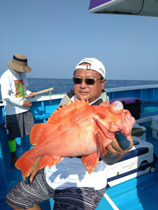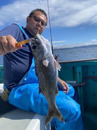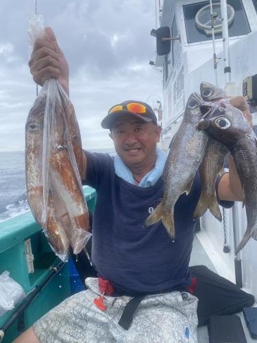 今日も午前船は朝一フラッシャーサビキ黒むつ五目へ。朝から潮の流れがぶっ飛び〜!(泣)オマツリ多く苦戦気味でしたが皆さんのご協力いただき何とか!(ペコリ) 黒むつはデカムツ混じりトップ4匹が2名様。他にアジ、良型サバ多数、クロシビカマス、他の魚多数などで何とかお土産に! 後半の泳がせ五目はこちらも潮がものすごく速く、やりづらかったですが皆さん頑張っていただき、ヒラメ、マゴチ、アカハタ、マハタ、クロメバル、カサゴなど。 本日はご乗船ありがとうございました。またよろしくお願いします。 午後船は泳がせ五目へ。 ほな、。