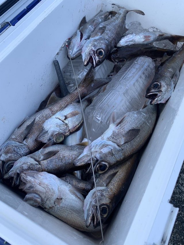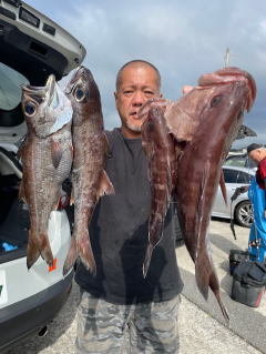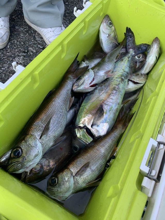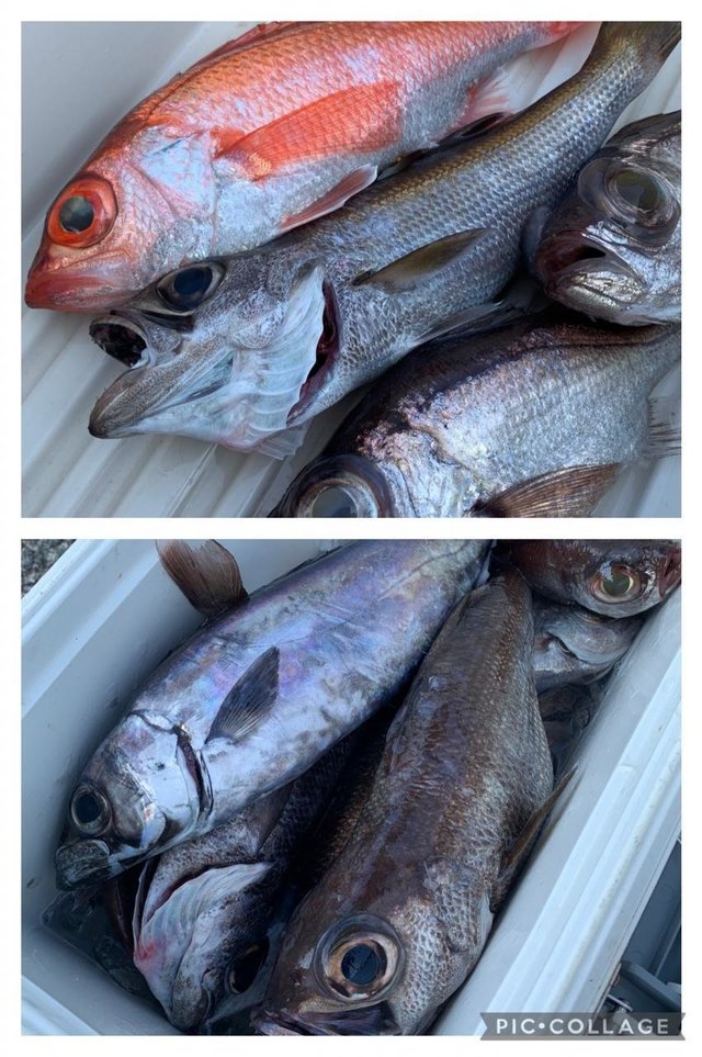 (クロシビカマス)クロムツ メダイ アジ サバ イサキ メジナ カサゴ 始めから美味しい高級魚は順調に釣れ、それに時々良型黒ムツが釣れる感じでした 潮が速く、追い食いと手返しの差が出ましたが、しっかりお土産は釣りました。他メダイ・スミヤキ・アジ・さばも!後半はサバの猛攻でいつもより早めにコマセ五目へ…イサキは多点掛け入れ食いタイム有り全員お土産出来、他メジナ・カサゴ・アジなども交じっています。