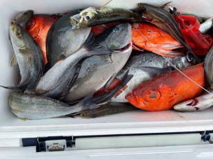 クロムツ 1~7匹 シロムツ サバ マアジ ドンコ ユメカサゴ カゴカマス LT中深場五目乗合船で出船しました! 朝何回かやり変えて探索すると… クロムツはっけーん! クロムツたまーにあたりありそこからヒント得て、他の場所でもクロムツ顔出して拾い釣りして8名全員クロムツゲット!!クロムツ釣れました! サイズはマチマチでしたが良型も釣れたり サバやクロシビカマス、カゴカマス、シロムツなども釣れました。 雨の中皆様ありがとうございました! またのご乗船をお待ちしております!