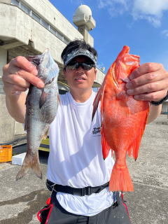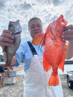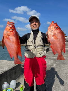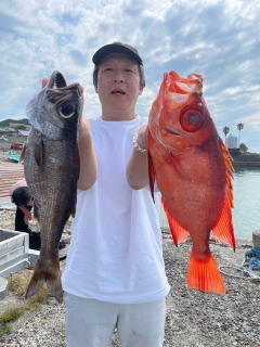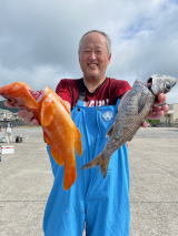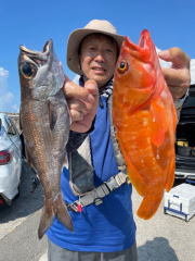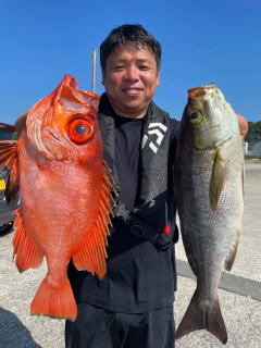 メダイ クロムツ ハチビキ アジ サバ アカイサキ ユメカサゴ メバル ウッカリカサゴ オニカサゴ 今日は朝一フラッシャーサビキ黒むつ五目へ。クロシビカマスの被害に遭われた方々にはお悔やみ申し上げます(ペコリ) でも今日もゲット!!おったで〜!おったでえ〜!デカムツ君がっ!!(^。^)! しかもロングタイム食ってくれたのでサイズは混じりでしたがトップは楽勝の30匹オーバーが数名と絶好調!他にメダイ、ハチビキ多数、アジ、サバ、アカイサキ、ユメカサゴ、メバル、クロシビカマス、他の魚などで今日もエード!エエドー!!に(笑) 後半の鬼カサゴは時間短くなり、潮も流れず小型の顔見て、ウッカリカサゴ、ユメカサゴなど。 本日はご乗船ありがとうございました。またよろしくお願いします。 明日5月1日(木)午前船は絶好調のフラッシャーサビキ黒むつ五目〜泳がせ五目でまだ若干の空きあります。2:15集合。 午後船ファミリーフィッシングは希望者あり募集中です。 ご予約、お問い合わせお待ちしてマース! ほな、ばいなら〜