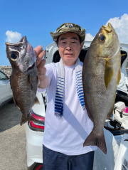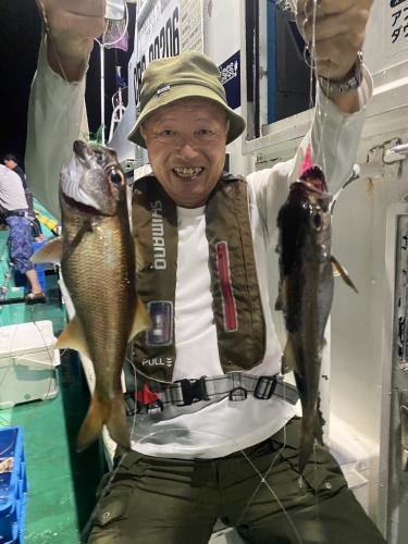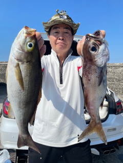 クロムツ 7~21匹 メダイ ハチビキ アジ サバ ヤリイカ スルメイカ 今日も朝一はフラッシャーサビキ黒むつ五目へ。今日もおったわい!デカムツ君が!(笑) 黒むつは良型多く混じり7〜21匹。2番手15匹、次いで13匹、10匹が2名様とほとんどの方がツヌケ!他に今日の裏本命(笑)良型含むハチビキ多数、メダイ、アジ、クロシビカマス、良型サバ、他の魚などと今日もエード!エエドー!に(^。^)! 後半のヤリスルメイカはいつもと別ポイントへ。風が強くウネリもあり当たり取りづらく苦戦。ヤリイカとスルメイカの顔見れましたが・・(泣) 本日はご乗船ありがとうございました。またよろしくお願いします。 明日4/27日曜日午前船は絶好調継続中のフラッシャーサビキ黒むつ五目12316;ヤリスルメイカでおかげさまで受付終了。2:30までに集合。 午後船ファミリーフィッシングはまだ空きあります。9:00集合。 ご予約、お問合せお待ちしてマース! ほな、ばいなら〜