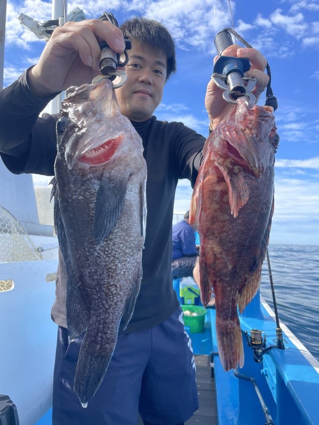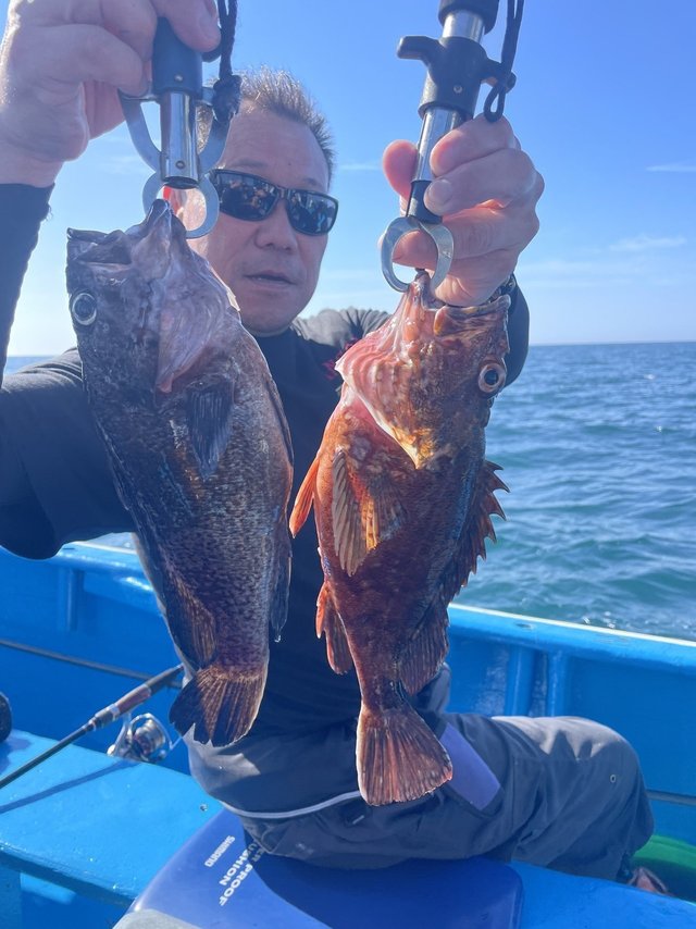 (クロソイ)アジ サバ カサゴ イシナギ タイ メバル マハタ 根魚五目船。 アジ、サバ1人20匹ー45匹くらい(唐揚げ、南蛮漬けに大人気!)。 時化明けの出船でしたが大物根魚ポツリポツリ当たり、バラシもあるものの上がり、お土産になりました!今後も大物狙って出船します!