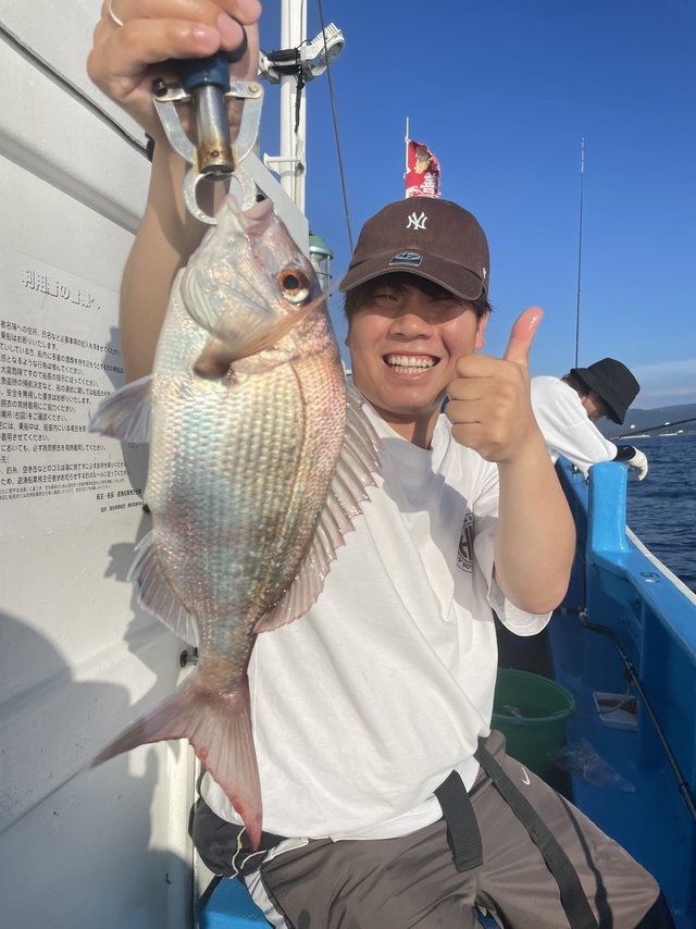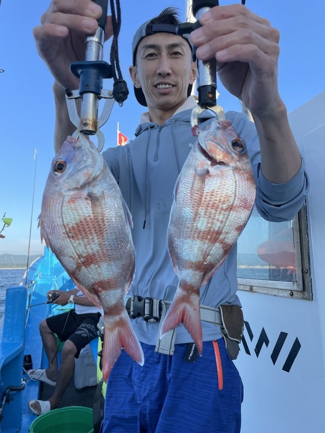 午前一つテンヤマダイで出船しました。水温24.1℃ マダイ最大で1.5kgその他1.2kg、1kg、0.6kg...トップ7尾でした。マダイ0.3~1.5kg0~7尾。ゲストでマハタ、カサゴ、ヒラメ2.5kg、メバル、クロソイ、カンダイ、ハナダイ、ショウサイフグでした。本日、乗船の皆様ありがとうございました。 【お知らせ】 明日8月17日(日)は午前一つテンヤマダイで出船致します。まだ座席に空きがあります。お早いご予約お待ちしております。 ※一つテンヤマダイ集合4時30分に変更しました! ※誠に勝手ながら満船時の当日キャンセルは乗船料の100%頂きます。ご了承下さい! 一つテンヤマダイ 12,000円(エサ、氷付き) 集合4時30分になります。 アマダイ、アマラバ 12,000円(エサ、氷付き) 集合4時30分になります。 エギダコ 13,000円(氷付き) 集合4時になります。 ご予約 電話090-1842-0165 お気軽にお電話下さいね!!