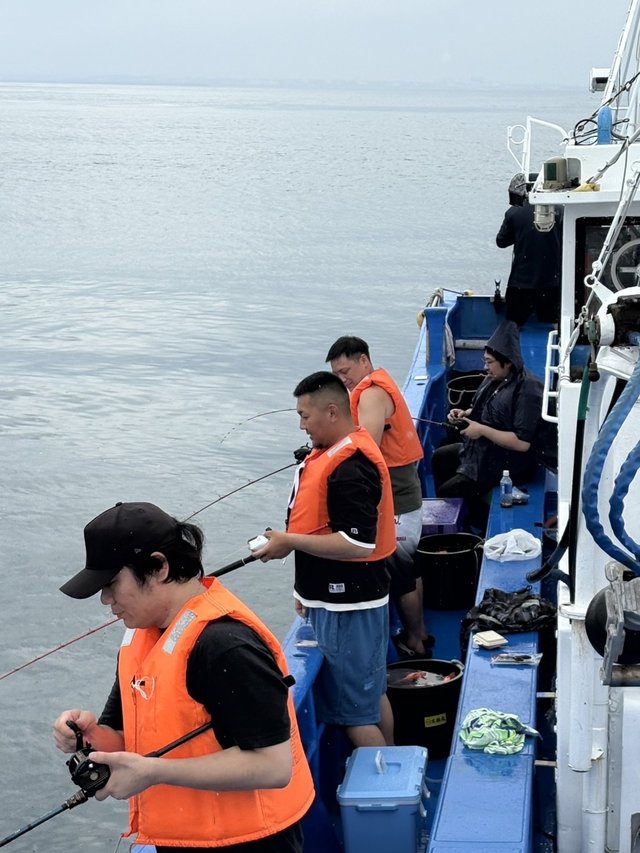 午前マダイ 船。水温下がり流れも無く苦戦でした、ゲストの喰いは良かった