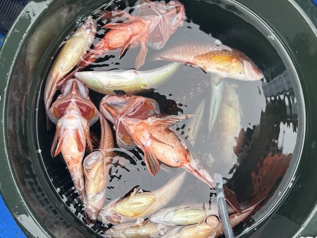オニカサゴ 1.00~1.20kg 0~1匹 ウッカリカサゴ ユメカサゴ キントキ サバ 午前オニカサゴ釣果。 ゲスト多数でお土産になりました。