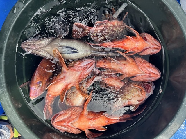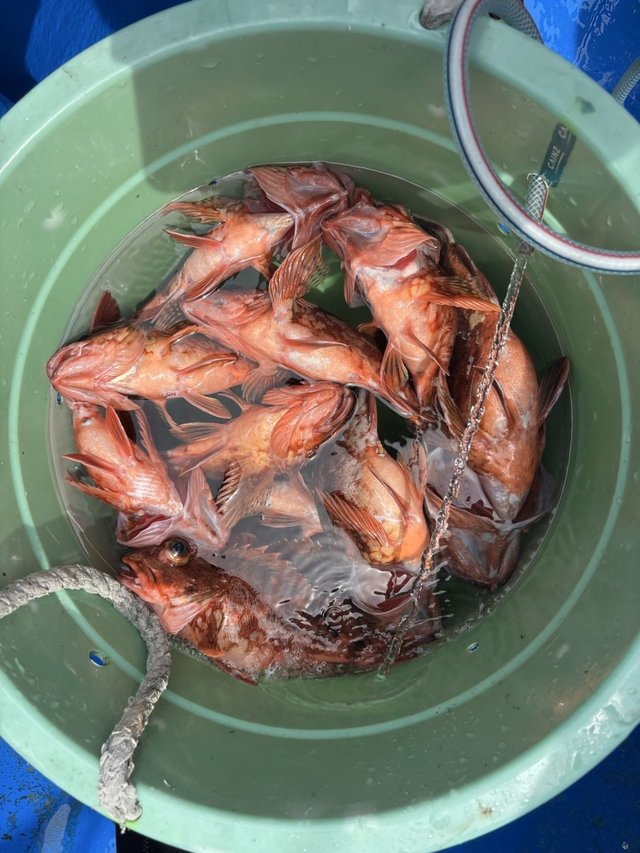 15~24cm 10~41匹 アカハタ 20~33cm 1~5匹 メバル 今日はちょっとだけですが、いつもより涼しかったです…とはいえ猛暑日には変わりありませんでした。 カサゴ主体でした。 小型が多かったですがアタリはポツポツとありました。 アカハタ、メバルともにときたま混じってくれます。メバルは良型でしたが船中2匹と数が出ませんでしたね…やはりメバルは生きイワシの方が好んで食べるようです。 ハタ類がもう少し出てくれると嬉しいですね、次回に期待です。