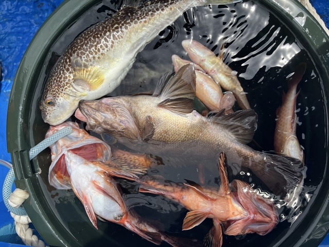 20~35cm 4~14匹 根魚五目で出船しました。 カサゴは良い人14尾でした。 その他、ショウサイフグ、ハタなどがあがりました。