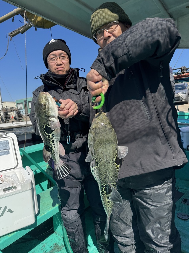 ショウサイフグ 25~40cm 5~17匹 カワハギ ベラ トラギス フグ船。 今日も海穏やかで、潮の流れ悪く、前回のポイントから入りましたが型が出ず。 探索し、後半ポツリポツリ大型フグ主体で釣れました!広範囲で型が出るので纏まればもっと期待できるでしょう!