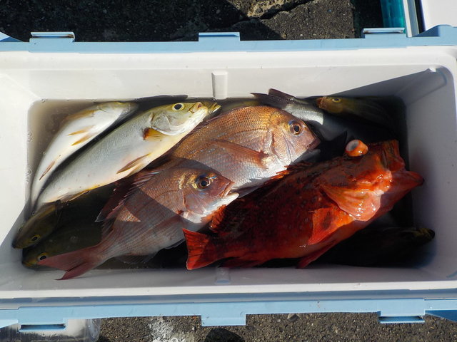 今日は、前半アラ釣り、後半マダイ五目釣りで出船しました。 アラは、潮が流れていませんでしたのでチャンスでしたが、カンコとクロムツの顔を見ただけで本命のアラは顔を見ることができませんでした。 マダイ五目は、小型サイズのマダイの顔を見ただけで終わってしまいました。ただし、イサキがポツリポツリと釣れました。その他メジナやウマヅラハギが交じりました。