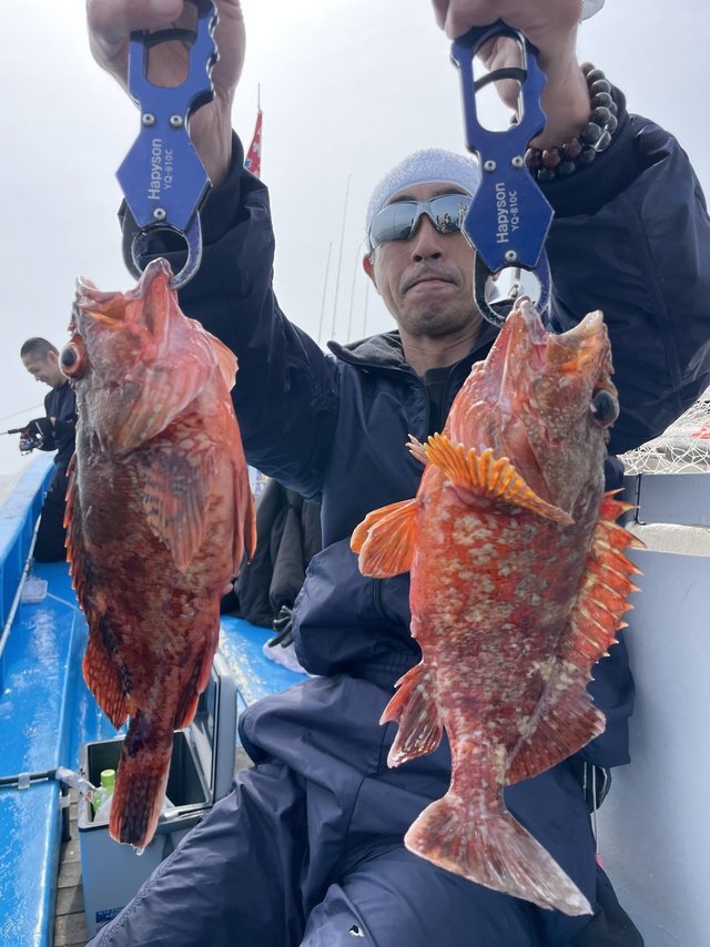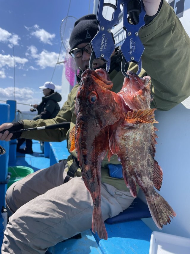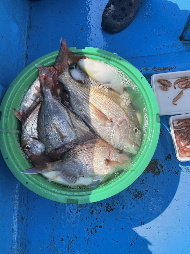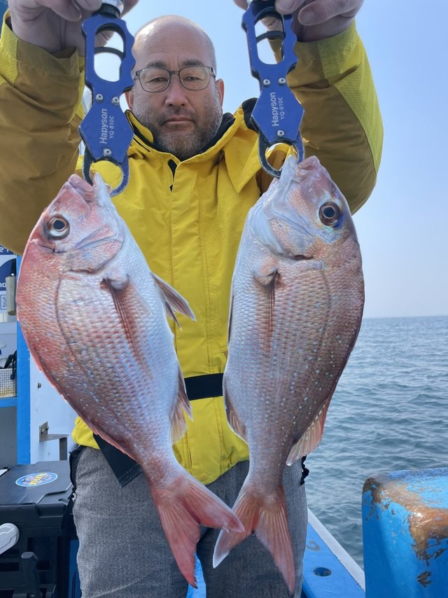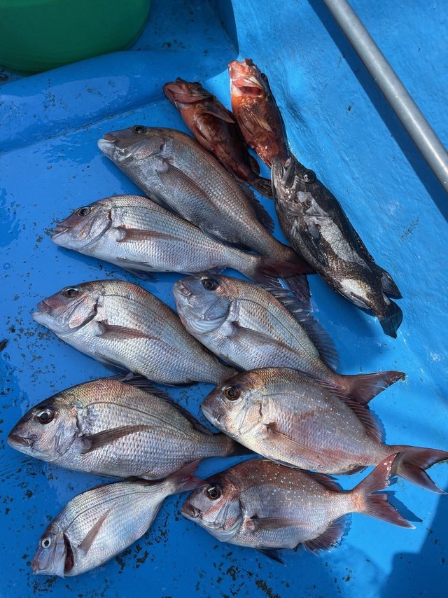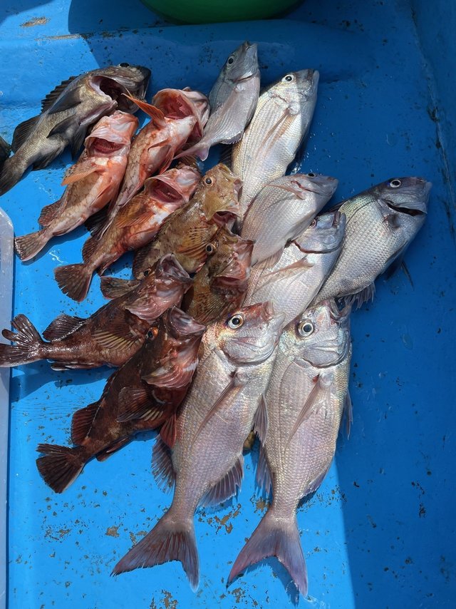 (キツネメバル)28~35cm 0~1匹 マダイ 0.30~0.60kg 0~3匹 カサゴ 25~32cm 0~4匹 メバル 25~32cm 0~2匹 一つテンヤマダイ、タイラバで出船しました。水温15.3℃ マダイ最大で0.6kgその他0.5kg...マダイ0.3~0.6kg0~3尾。ゲストでマゾイ、カサゴ、メバル、ショウサイフグでした。本日、乗船の皆様ありがとうございました。 【お知らせ】 明日4月19日(土)は一つテンヤマダイで出船致します。お早いご予約お待ちしております。 ※一つテンヤマダイ集合4時30分に変更しました! ※誠に勝手ながら満船時の当日キャンセルは乗船料の100%頂きます。ご了承下さい! 一つテンヤマダイ 12,000円(エサ、氷、昼食付) 集合4時30分になります。 アマダイ、アマラバ 12,000円(エサ、氷、昼食付) 集合5時になります。 エギダコ 13,000円(氷、昼食付) 集合4時になります。 ご予約 電話090-1842-0165 お気軽にお電話下さいね!!