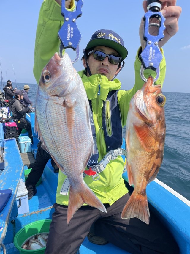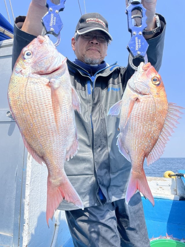 (キツネメバル)28~35cm 0~1匹 マダイ 0.30~0.60kg 0~3匹 カサゴ 25~35cm 0~3匹 メバル 25~30cm 0~1匹 マハタ 25~30cm 0~1匹 イナダ 40~50cm 0~1匹 一つテンヤマダイ、タイラバで出船しました。水温15.7℃ マダイ最大で0.6kgその他0.5kg...マダイ0.3~0.6kg0~3尾。ゲストでマハタ、カサゴ、メバル、イナダ、ホウボウ、ハナダイ、ショウサイフグでした。本日、乗船の皆様ありがとうございました。 【お知らせ】 4月28日(月)は一つテンヤマダイで出船致します。お早いご予約お待ちしております。 ※一つテンヤマダイ集合4時30分に変更しました! ※誠に勝手ながら満船時の当日キャンセルは乗船料の100%頂きます。ご了承下さい! 一つテンヤマダイ 12,000円(エサ、氷、昼食付) 集合4時30分になります。 アマダイ、アマラバ 12,000円(エサ、氷、昼食付) 集合5時になります。 エギダコ 13,000円(氷、昼食付) 集合4時になります。 ご予約 電話090-1842-0165 お気軽にお電話下さいね!!