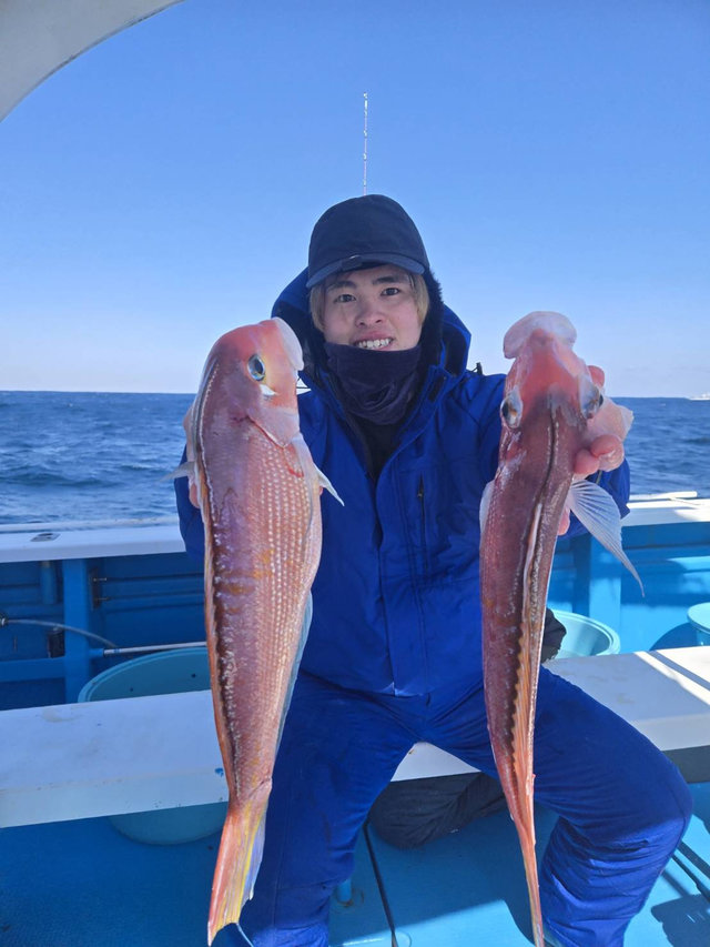 2号船釣果。 本日はアマダイ船で出船しました。 天候晴れ。 風北〜南。 潮西に流れる。 アマダイと白アマダイ。 0〜6匹 25cm〜33cm。 イトヨリ 0〜4 23cm〜37cm。 赤ボラ、カナガシラ、カレイ、アジ、サバ 本日は、風は冷たかったのですが天候も良く。 懸念していた風もなぎ 穏やかないい釣行でした。 ご来店頂いたお客様と天候に感謝です。