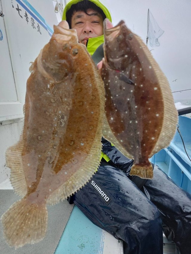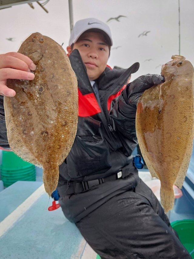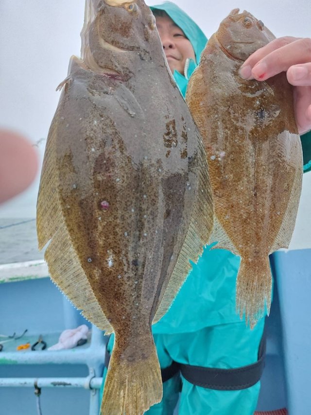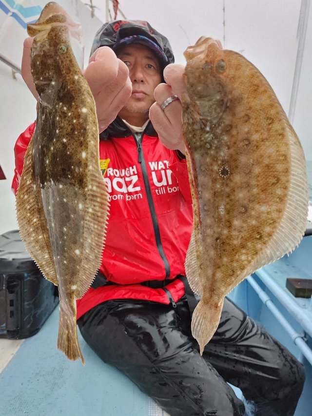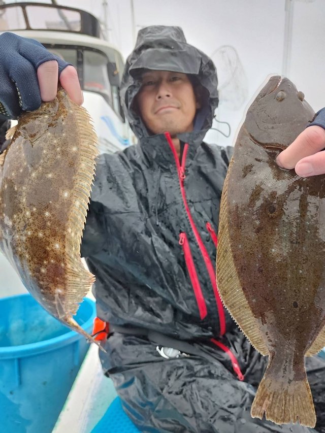 午前ヒラメ釣果。 今日はバラシからのスタート。 やっぱり、こうなると上手くいかないもんで次にアタリが来ても逃げてしまう。 中々、船内に入らない。 日中になってからやっと本命キャッチ。 その後も後が続かず、、、、 ポイントを変えて、良型キャッチ! その後も、、、、バラシて皆さん雨の中、一日頑張ってくれましたが、、 今日一日、、、グダグダで終わってしまいました。 又次回宜しくお願いします!