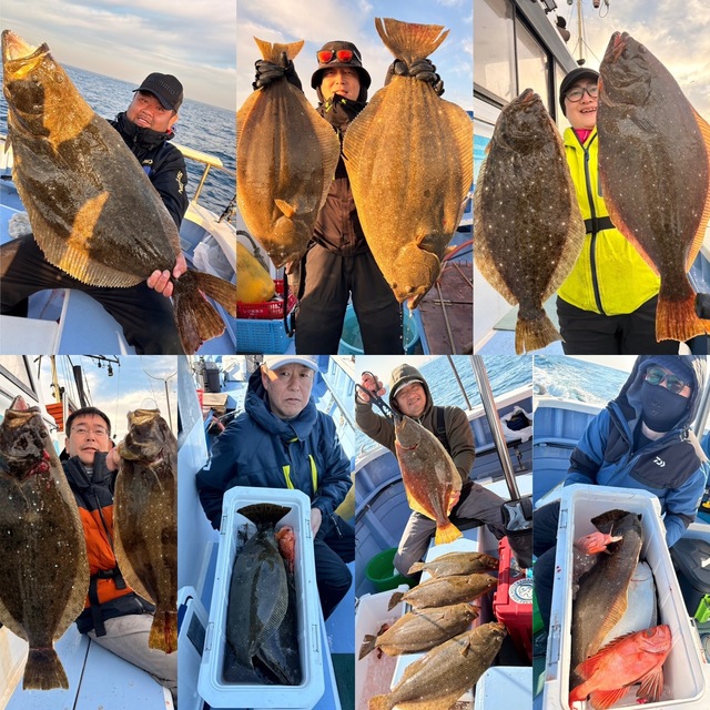 0.30~6.70kg 0~10匹 本日よりヒラメ釣り全面解禁となりました!! 風向きと潮流れ合わずヒラメの活性はイマイチでしたがいい時には数人同時に上がったりと解禁らしい掛かりする場面もありました。 ただやはり流れないのと潮色も合わないのかアタリ少ない時間帯もありましたね。 しかし今期最大6.7kgも上がったり他にも3kg以上の良型も多めに上がったりしましたね!まだまだ始まったばかり!今後も期待しましょう!!