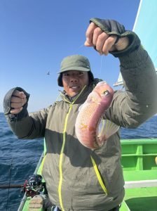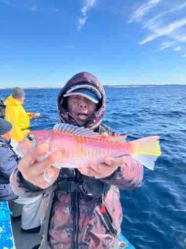 アマダイ 32~40cm 0~4匹 オニカサゴ カンコ イトヨリ アマダイ船。下浦沖から剣崎沖を転々と狙い、西風やや強く吹いてウネリ高く釣りづらい状況でした。 1日を通して海悪く底ダチ取りづらく、潮の流れも緩く各ポイントで船中ポツリと顔見れるものの単発で、サイズは中・良型揃いに終日ポツリポツリの拾い釣りでした。 トップ4尾、残念ながらオデコ1名でした。 潮次第でデカアマのチャンス有るので今後に期待しましょう(^^♪