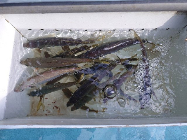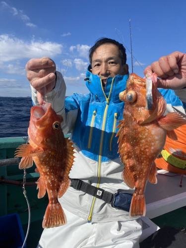 アカムツ 18~38cm 2~8匹 オキカサゴ アジ タチウオ アカムツ船。 ウネリ有り釣りづらかったが、アタリ多く良く釣れました。規定数3名。