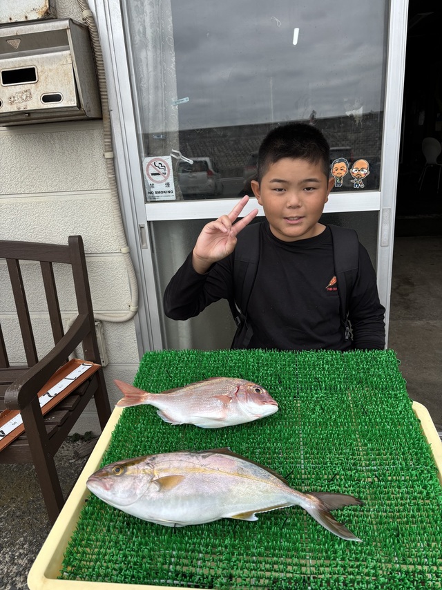 1.00~2.50kg 0~2匹 カンパチ 1.00~2.70kg 2~18匹 イナダ 45~50cm 0~2匹 本日もご乗船ありがとうございました。 今日は、カンパチが爆釣れ、 サビキが有利で、 サイズがどれも大型でした! ゲストは、オオモンハタ! ソーダカツオ、 仕立て船でも、カンパチなどお土産に!
