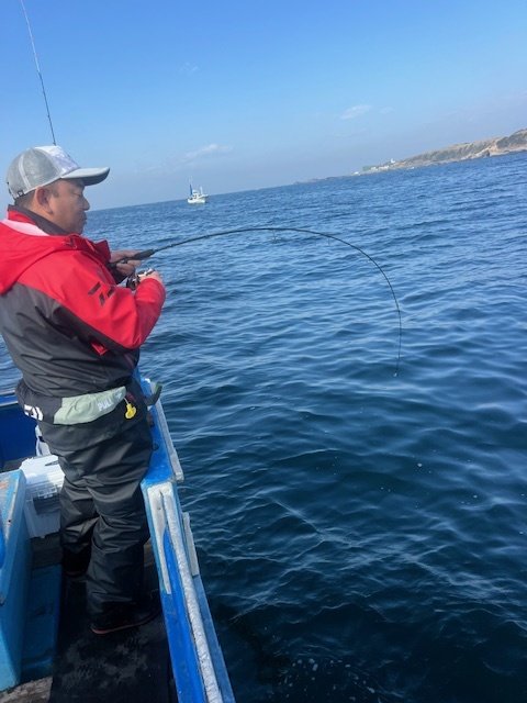 1.50kg 合計1匹 アジ 20~40cm 13~36匹 ヒラメ 1.10~1.20kg 0~1匹 マハタ 1.00kg 合計1匹 今日2日も朝から快晴で、風の微風のち無風のち南の微風で海はベタ凪。絶好の釣り日和で出船する事が出来ました。直近数日はこんな好天が続いてくれていて最高だったのですが、明日3日は早くも急降下で、天気は朝から雨で、風も北ながらヤヤツヨの予報になっています。そんな予報ですからご予約も入らず、全船休船を決めました。更に、明後日4日も同じ様な予報なので、やはり休船を確定しました。5日に関しては明後日の判断になりますので、天候が回復していれば出船予定で出船予定です。アジ五目船、根魚五目キンメ・クロムツ船、アマダイ五目船で出船します。 アジ五目船は今日も何時もの根回りからスタートです。反応も何時ものように爆発していて、仕掛けを下ろすと直ぐに当たり始め、中アジベイトアジ交じりで入れ食い状態の方もいましたが、これも何時もの事ですが、当たりを待ったり、空で上げてくる方もいたり、全員か簡単に釣れるって訳には行きませんでしたが、その盛り上がりで皆さんお土産は何とか捕まえる事技出来ました。その後今日は泳がせ等、端物狙いのお客様も多かったですし、余りにも穏やかでしたので城ヶ島沖まで調査に出かけました。この所、割と当たり始めたマハタを捕まえたものの、後が色々と続かず、最後は近場の漁礁回りで、ようやくヒラメを2枚捕まえて納竿と言う事になりました。まだまだ、反応なりの食い方はしてくれませんが、この荒天予報が落ち着いてくれれば、更に上向いてくれる見込みです。是非お出掛け下さい。