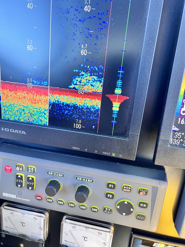 (ケンサキイカ)13~20cm 0~8匹 マルイカ船三崎港西口から。反応は70mラインからは餌であれあるようですけど、魚のセットになっていますね。流れはいつもの西上潮でそれほど速くはなく、素直なのですが触りません。んで城ヶ島東側へ。こちらの方が緩くってって・・・浅場にもいるかも・・・・え?__?逃げ足早く_これでもいつもより浅場に餌反応も登っている・・・んで83mくらいから触るかな???的な反応が出っ放しだったり。なんと後半3連チャンも。結果、帰ってきてから船洗いしてみたら、表面水温16度ありますが、多分ですけど底潮は氷水のように冷たいですねええ。これ春の濁りで上が暖かくならないと。。。