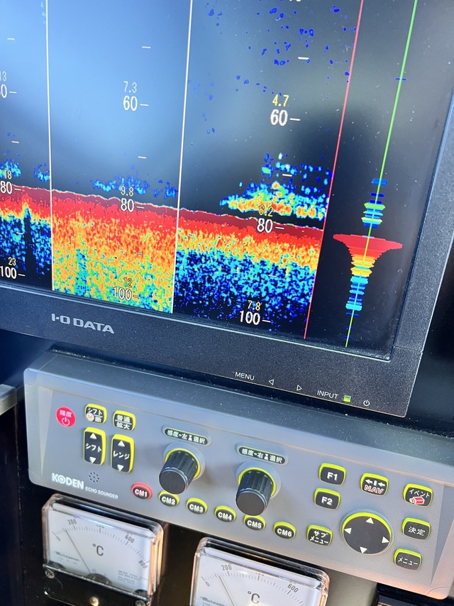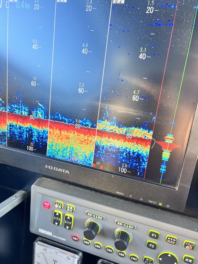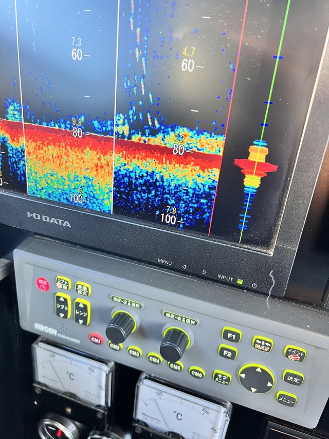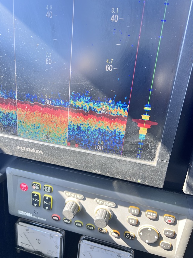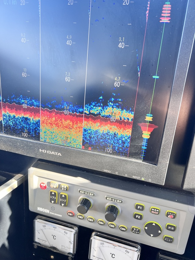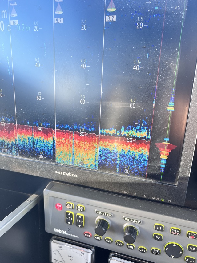 (ケンサキイカ)17~25cm 2~10匹 LTマルイカ船。久しぶりに出船です!前半から反応少なく、見つかっても小さい反応で型見る程度でしたが、後半それなりの反応見つかり3回できる流しもありましたよ!