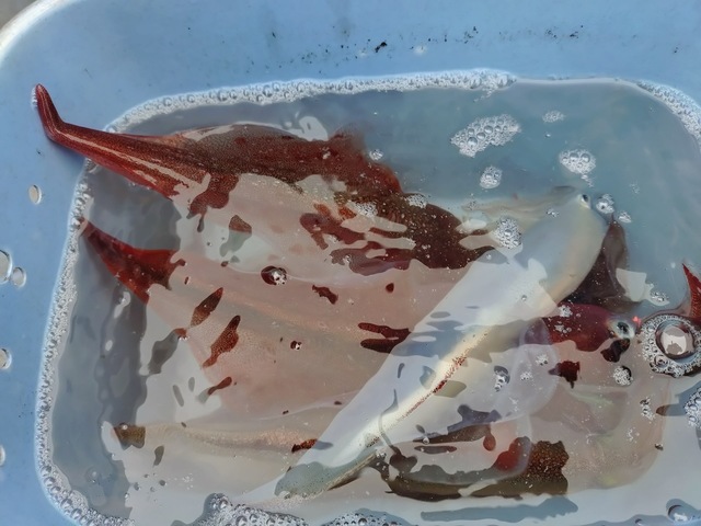 32~43cm 5~12匹 スルメイカ 水色は澄み。潮は長潮。波は普通。風は普通。 スルメイカも混じりました。