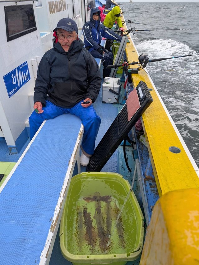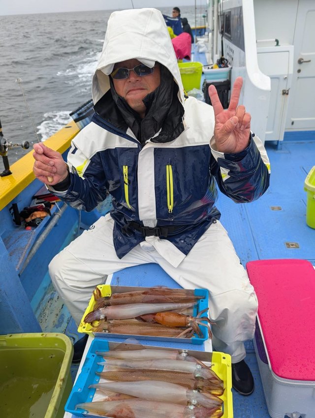 35~48cm 0~15匹 雨も帰港時までは持ってくれて、予報より良かったです。 5点掛けもあり、大型主体でお土産に! 0尾は1名様、船酔い...お疲れ様でした。 明日も、ヤリイカ狙いで出船で受付は終了いたしました。 ありがとうございます。