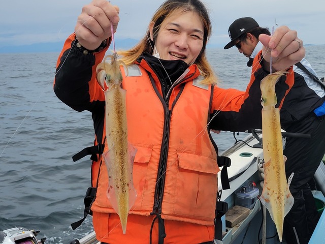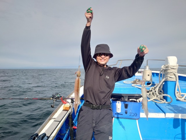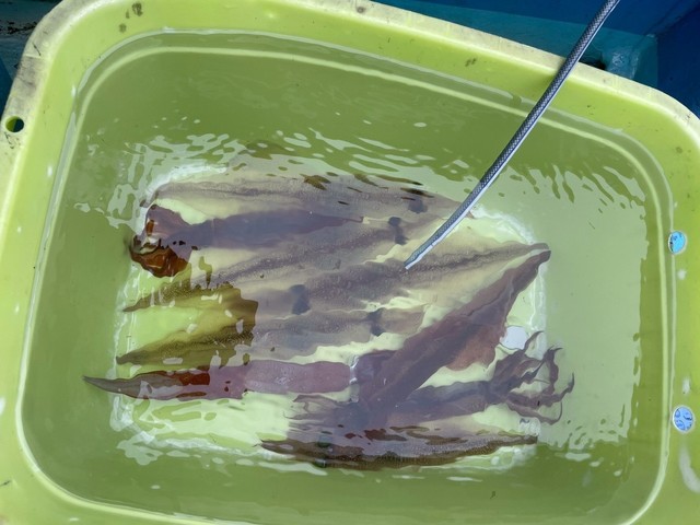 潮と風が同じ方向だったので海は予報より良かったです。 ヤリイカは2点、3点掛けなどあったがツ抜け出来なかったお客様もいらっしゃいました 型は良いのでスソで10杯行きたい所ですが難しいですね。 お疲れ様でした。