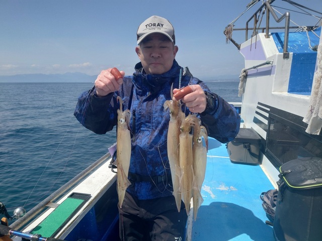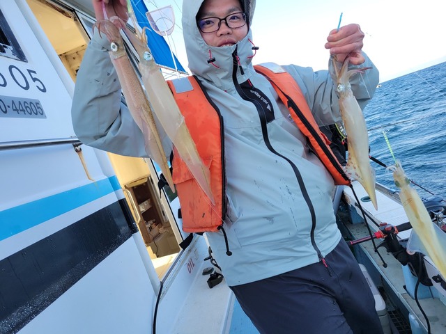 25~48cm 4~22匹 朝のうち、乗りはよかったです。 中だるみもあり、サバの攻撃も激しく、バラシが多かった。 一日ポツポツ... 大型ヤリイカですので重量はたっぷりで、お土産になりました。 約半数のお客様がツ抜けしました。 明日もヤリイカ狙いで出船いたします(受付終了)。