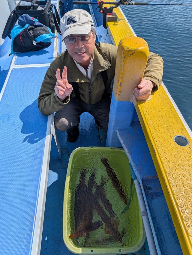 20~40cm 1~9匹 ヒラメ 1.20~6.50kg 1~6匹 明日でヒラメは終了です。また6月からお待ちしております。 明日はヒラメとヤリイカ午後テンヤマダイで出船予定です。 まだまだ空きあります。(カサゴ0~2匹混)ヒラメ6.5キロを筆頭に5.5、4.7、3.7、3.6.、3.5キロを1人で5匹釣れた方も!3キロ、2.5キロ以上多数と超ヒラメ祭でした! 夢の様な1日でした。明日を残して今期終わるのが残念です。 ヤリイカ本日は東沖のポイントにての釣行でしたが、また真沖の方に群れが戻った様子これからは真沖狙いで出船する予定です。 4月からはアマダイ、ヤリイカ、アジ五目(コマセ)、テンヤマダイ、アカムツ、沖根魚 午後テンヤマダイ アングラーズからも予約できます(一部) 先の予約も出来ます。(6月からのヒラメも) キャンペーンで3000円引きも! 3月31日までに予約可能です! ヒラメは3月いっぱいで終了です。 6月からまた始まりますよ! コマセ(アジ)午前中のみもリクエストして下さい。(4月GWになれば午後も) インスタ始めました\(^o^)/良かったら見て下さいね~。 天気が変わりやすい時期ですので中止や変更になる時がございます。 こちらでお知らせしますのでご了承下さい。 午後テンヤマダイへも~。 特に根魚は餌の都合上、ご予約は前日までにお願い致します。 初めての方や慣れていない方は是非、船長の見える場所へお座り下さい! 予約時すぐに電話に出れない時がありますが折り返します! 人数集まれば出船致します。 人数が集まらないと出船できません。 人数と釣果次第で変更します。 千葉東金横芝ICから匝瑳市(旭市隣)まで高速道路が延長になりました。最終、匝瑳ICで降りて右折、海沿いで是非いらっしゃって下さい。早くなりますよ~! 天候の変わりやすい季節です。 変更あればこちらでお知らせ致します。 前日前々日にご確認のご連絡下さい! 今後はヒラメ、アカムツ、沖根魚(アラ、鬼カサゴ)、テンヤマダイ、アマダイ、ヤリイカ 午後テンヤマダイ、根魚五目 午前船のお客様はお弁当付いてます(ノ・∀・)ノ 集合時間 ヒラメ4時15分 ヤリイカ3時 アカムツ、沖根魚、アマダイ3時15分 マダイ、根魚五目4時30分 時間厳守でお願いいたします! もし遅れる等の場合は早急にご連絡下さい。他のお客様を待たせてしまう、出船時間も遅れてしまいます。 リクエスト、人数天候等により変更あります! テンヤは遊動式しかけで!初心者でも釣れますよ~! 初心者の方、予約時お知らせ下さい。 救命胴衣(無料)、レンタル貸竿(基本無料。有料も有)ございます。