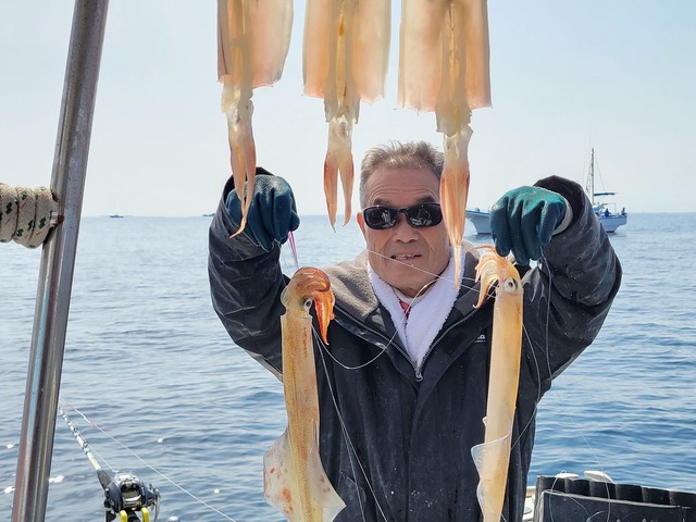 25~45cm 0~8匹 本日は穏やかなナギ日和、大勢のイカ釣りファンの皆様が釣りに出かけて下さいました。 期待のイカは残念ながら・・・ 言い訳ばかりになってしまいますが、船数多く、どの船も満席状態、狭いポイントへ集結すれば上手く流せません。 そして今日に限って上潮が速く、潮目も悪くオマツリ多発。 空いているポイントを狙いますが、乗りの良い群れは見つけられませんでした。 申し訳ない、ボウズの方2名出てしまい、次頭7杯が2名。 明日はご予約ガラガラですので、仕切り直して見つけます。