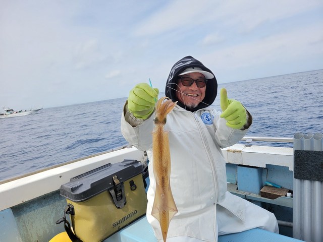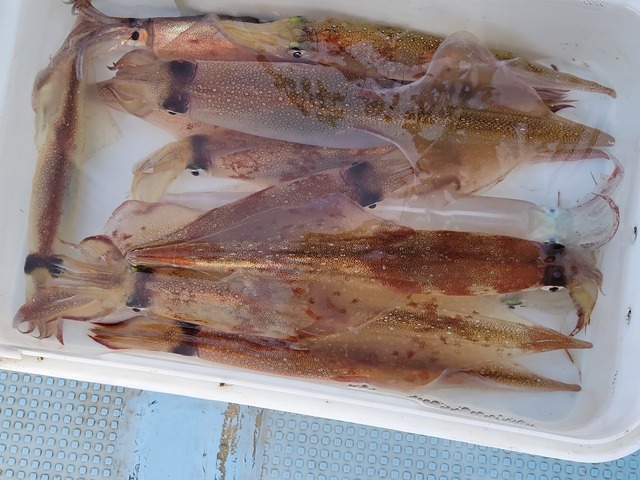 30~48cm 24~87匹 朝から、多点掛け出来て、大流しも効き入れ乗りでした 3年ぶりの好釣果となりました。 45杯以上が5名様。 イカ釣り初めてのお客様も24杯ゲット出来、皆さん盛り上がってました。 このまま続くことを願います。 明日は残念ながらまたまた、予報悪く中止となってしまいました。