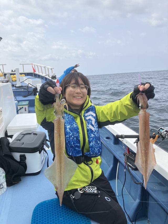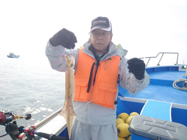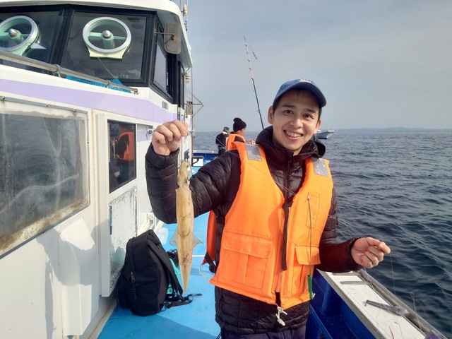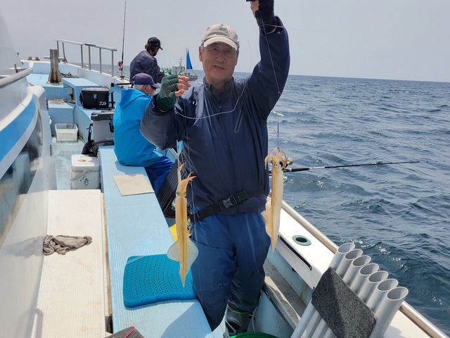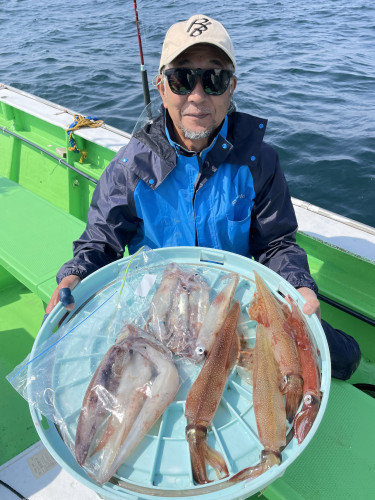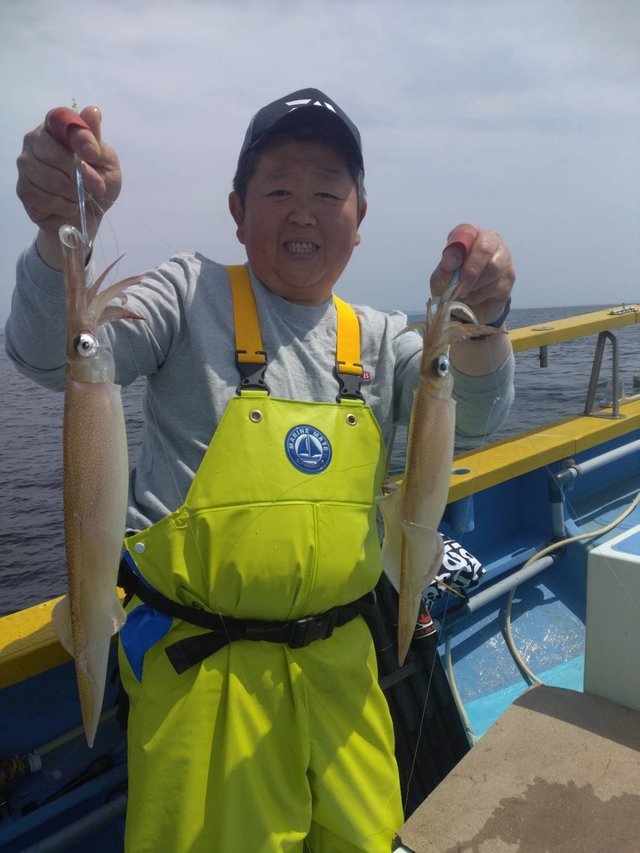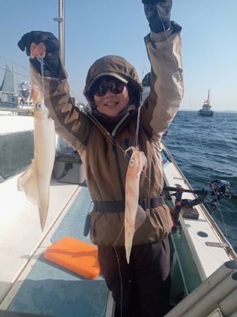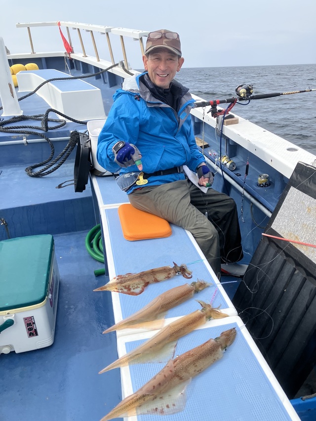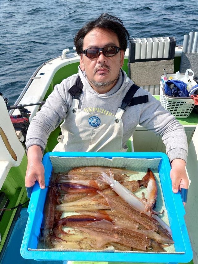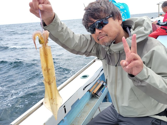 30~40cm 0~6匹 仕立船でした。有り難うございます。朝はスルメ狙いで白浜沖(ガンコ山)に向かいました。途中、潮目だらけで海悪く、到着すると潮が速く潮型悪くて最悪でした。しばらくすると速い潮は落ち着きましたが、ノリ悪かったです。潮のせいかな?白浜沖(ガンコ山)は型を見た程度でラスト1時間は乙浜沖にヤリイカ狙いで向かいました。こちらも潮速く潮型悪くて最悪でしたが皆さん頑張っていただき納竿間際にほぼ全員が釣り上げたり3点掛けしたりして盛り上がりました。ヤリイカの反応が有ったし、潮が落ち着けば面白いかもしれません。明日以降に期待です!!写真を撮るの忘れました。