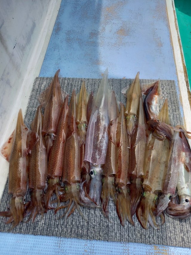 18~40cm 6~26匹 ヤリイカ船。反応少なめでしたが上手く当たると4〜6杯掛けと数付く場面も(・∀・) 中型主体に良型も! 26杯が2名、続いて24杯 ほとんどの方が10杯以上で平均的に良かったです(´・ω・`)