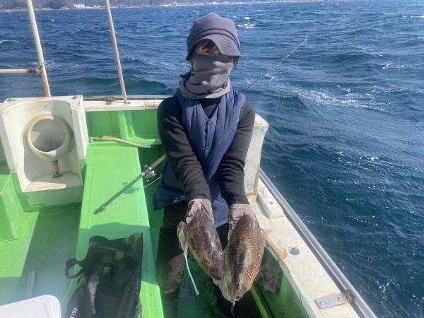 (カミナリイカ)ヒラメ キジハタ アオハタ キントキ カンパチ イナダ マトウダイ ホウボウ イワシ泳がせに出船しました。朝から当たり多く魚種も多彩でした!