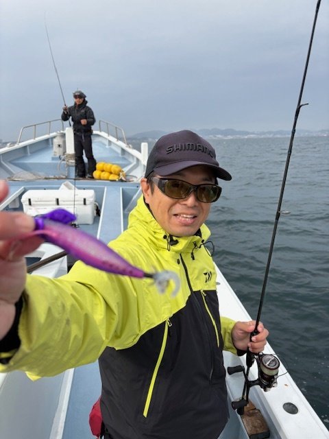 アオリイカ船、今日は朝方が好調で全員アオリイカの顔を見ることができました。その後は静かな時間もありましたが、キロアップのイカも釣れました。本日はありがとうございました。