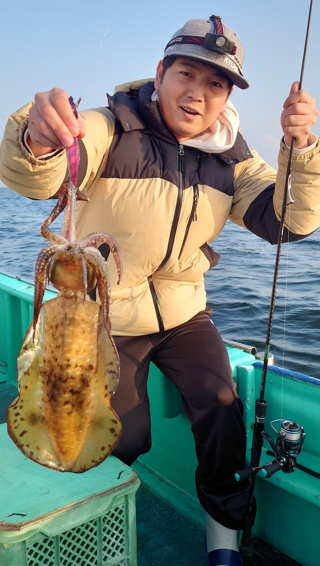 (カミナリイカ)1.20~1.60kg 0~3匹 アオリイカ 0.50~0.50kg 0~2匹 今日はティップランで出船しました。 風弱く波は高めでやりづらい1日でした。 朝から顔は見られたのですが、後に続かず苦戦しました。 次回に期待しましょう。 今日は乗船ありがとうございます。 お疲れ様でした。