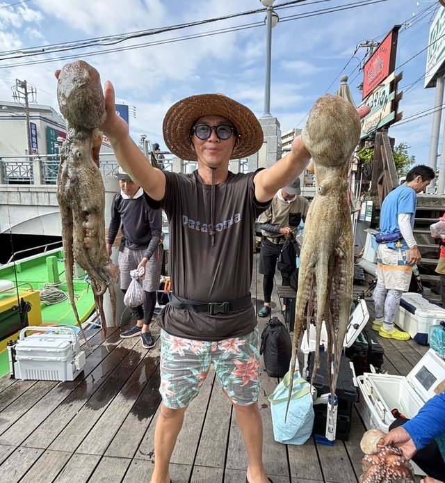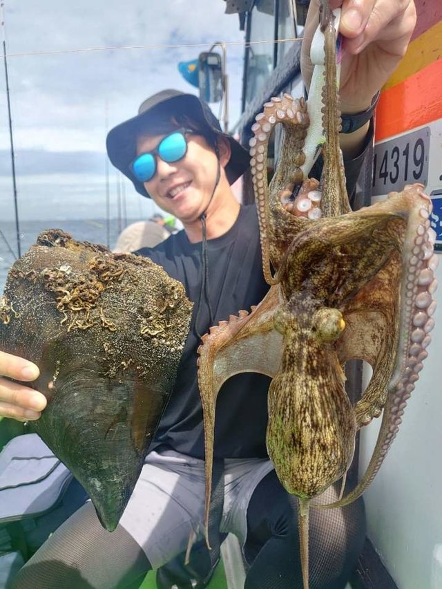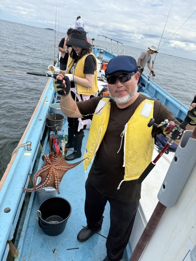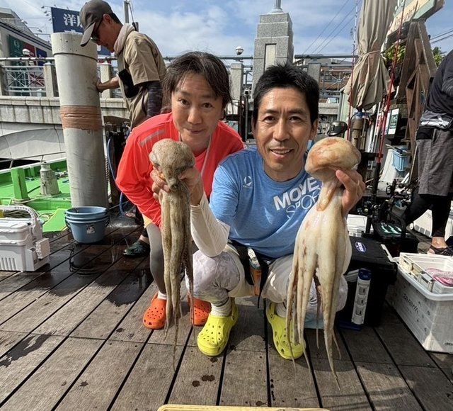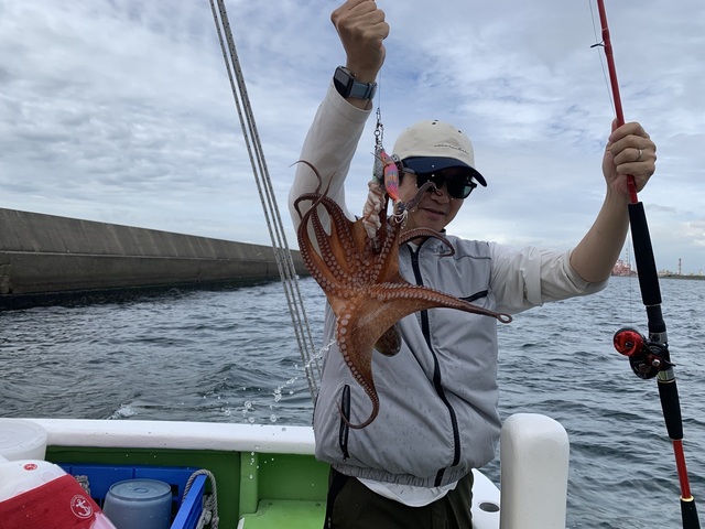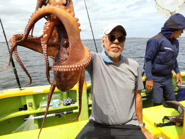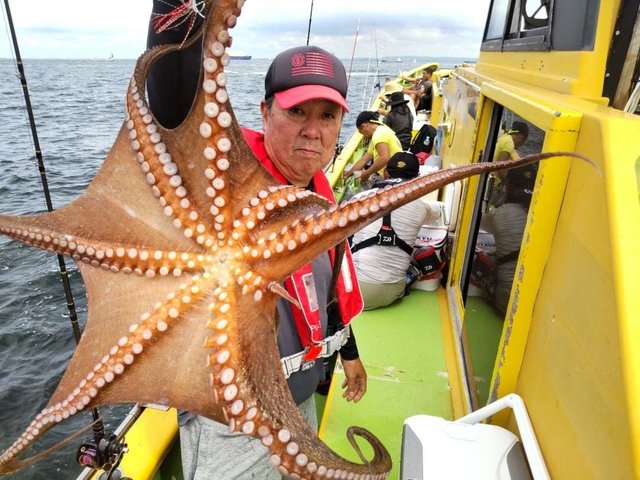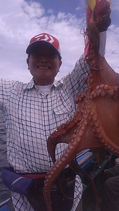 0.50~5.80kg 0~5匹 マダコ ◎●○マダコ船○●◎ マダコ0.5~5.8kg 0~5杯 今日は…、先日の6キロオーバーには及ばないまでも最大5.8kgの他にも5キロ台も出て、3キロ台、4キロオーバーもいくつかずつ! 今日はバラしも多く、バラしのみでゲット成らずの方も数名残してしまいましたが、本日トップの高地さんは5杯でも良型揃いで悠に15kgオーバーでした! 竿は硬め(強め)のものが良いでしょう。 オモリは六角(小田原)オモリの40、60、80号を潮流等により使い分け!蛍光や派手なカラーリングは不要です。 余計な(?)飾りや付属品は不要です。シンプルに~!