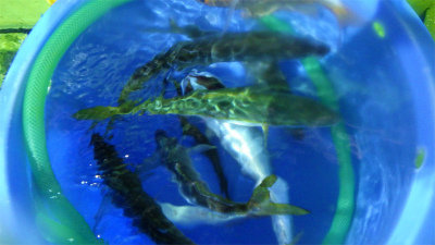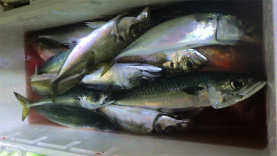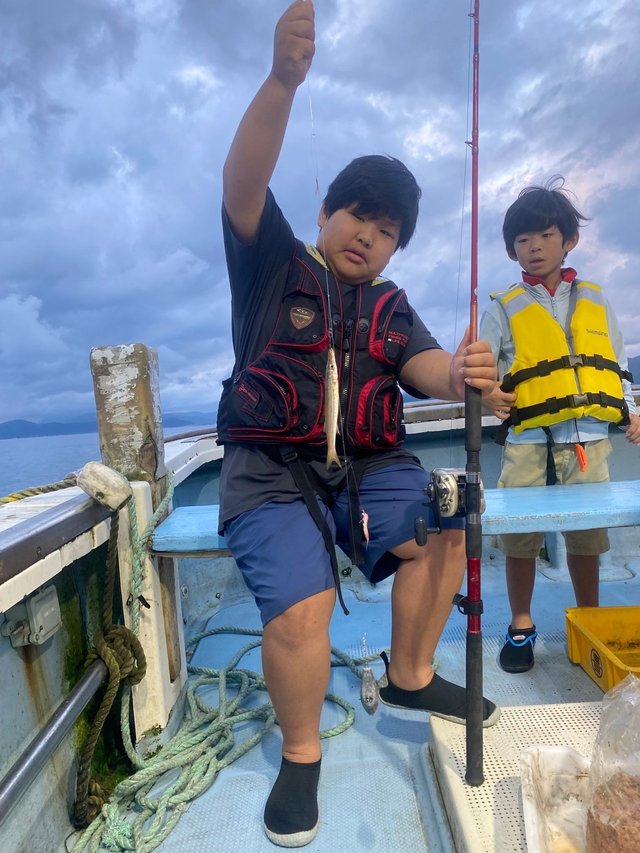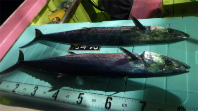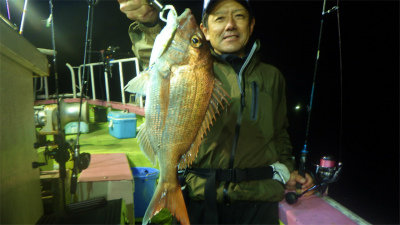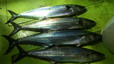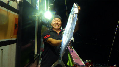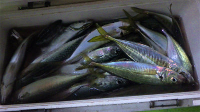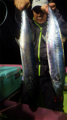 (アカカマス)アジ 15~50匹 サバ 5~20匹 マダイ 0.80~4.10kg 合計4匹 タチウオ 合計2匹 レンコダイ 合計3匹 アオリイカ 合計2匹 マエソ アカイカ 夜便アジ&イナダ釣り。いつもに比べて静かな立ち上がり。あれっれっ.......鯖いなくなったのかな~......。 しかし、20時近くになると今日はアジが多い。 時々サバの姿も出たが、なぜかイナダの姿は一匹も見えなかった。 今日はナイトジギングも可にしていたのですが、一人で4.1kのサイズを含むマダイが3枚釣れた方もいました。 又、アジに集中した方は50匹以上が竿頭でした。 アジサイズは、35~28cmサイズ、少し小振りなサイズは太っていました。全体的には30cm前後が多かったように思います。 タチウオやカマスの姿も混ざりより秋の海になりました。