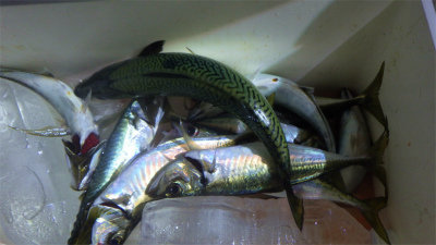 (アカカマス)サバ アジ 1~10匹 イナダ 竿頭40匹 マダイ 最大1.50kg 合計3匹 マエソ 夜便に出船。 いつもは20時頃からの釣れ初めだが、今日は開始とともにヒートアップ。 ずっと釣れ続けて20時30分頃にはクーラーの中はやばい感じに........。 とうとう最後まで釣れ続けて30分ほど早く切り上げました。 大サバが入ってきています。又、kサイズのイナダも混ざり始めました。 いつもはハヤブサの房総フラッシャーを進めていますが、さらにサイズアップを狙うにはタコベイトのイナダ仕掛けなども良いです。 デメリットはアジが掛からないこと。でもサバとイナダはかなりサイズアップします。 よろしかったらご用意してみてください。 現在オマツリ防止のため、オモリは120号を使用しています。 かなりアタリが強いので、3m以内で錘負荷100号程度のグラスロッドが柔軟で使いやすそうです。錘負荷が大きくても堅いイカ竿は絶対避けてください。オマツリが連発しますので。 マダイなども混ざりましたが、今日の3枚は、エサなしでした。カマスなどの姿も見えてきたのでこれからの秋の海に期待大です。