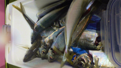 夜便アジ&イナダ釣り。夜になっても水濁りは消えず、潮も午後便に比べて早い上り潮。 ポイントに着くまでいつもは中層の青物反応が出ているのが、今日は見えず。 時間が経過しても、活性は上がらずサバもアジもさっぱりでした。