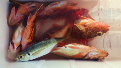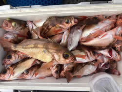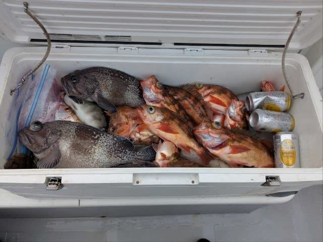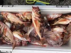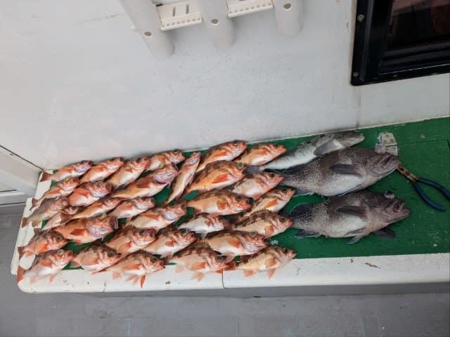 アラ 中深海アカムツ、アラにて出船。 猛暑が予想されましたが、 ポイントは南風が心地よい 釣り日和となりました。 メバル、アラがポツポツでした。 風が凪て来ると当たりも失速。 暑さも厳しくなり 予定時間丁度の沖上がりと、 なりました。 厳しい状況の中、 ラストまで頑張って頂き、 有難うございました。